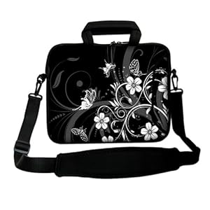 Dress up your beloved netbook laptop with this stylish black and white butterflies with flowers carry case. Its neoprene construction provides protective cushioning that feels great in your hand. Neoprene is water resistant and will protect your investment from leaks or spills as well. The slim-fitting and lightweight design of this computer shoulder bag, you can choose to slip your laptop into your carrying bags, backpacks, or briefcases when you're on the road, or to show case your personal style by carrying this notebook sleeve with it's padded, detachable, adjustable shoulder strap. Puller zipper on the top pouch case offers easy to slip on, slip off. These unique design printed on both sides of this slipcase. Make a fashion statement while you carry your iPad or notebook in this sleek laptop case. * Due to monitor variations colors may appear slightly different. Also compatible with following models: Apple Macbook Pro 15, Macbook 15, MacBook Pro 15.4 inch Acer Aspire 3100 14.1 inch, Aspire 3102 14.1 inch, TravelMate 14.1 inch Dell Inspiron 1501 15.4 inch, Inspiron 1520 15.4 inch, Inspiron 1521 15.4 inch, Inspiron 1525 15.4 inch, Inspiron 1526 15.4 inch, Vostro 1500 15.4 inch, Vostro 1510 15.4 inch, Vostro 1520 15.4 inch, Vostro 2510 15.4 inch, Vostro 1520 15.4 inch, HP 550 15.4 inch, Compaq 6510b 14.1 inch, Compaq 6710b 14.1 inch, Compaq 8510p 15.4 inch, Compaq Business Notebook Nx7300 15.4 inch, Compaq Mobile Workstation Nw8440 15.4 inch, EliteBook 8530p 15.4 inch, Sony VAIO 13.3 inch, VAIO 14.1 inch, VAIO 15.4 inch